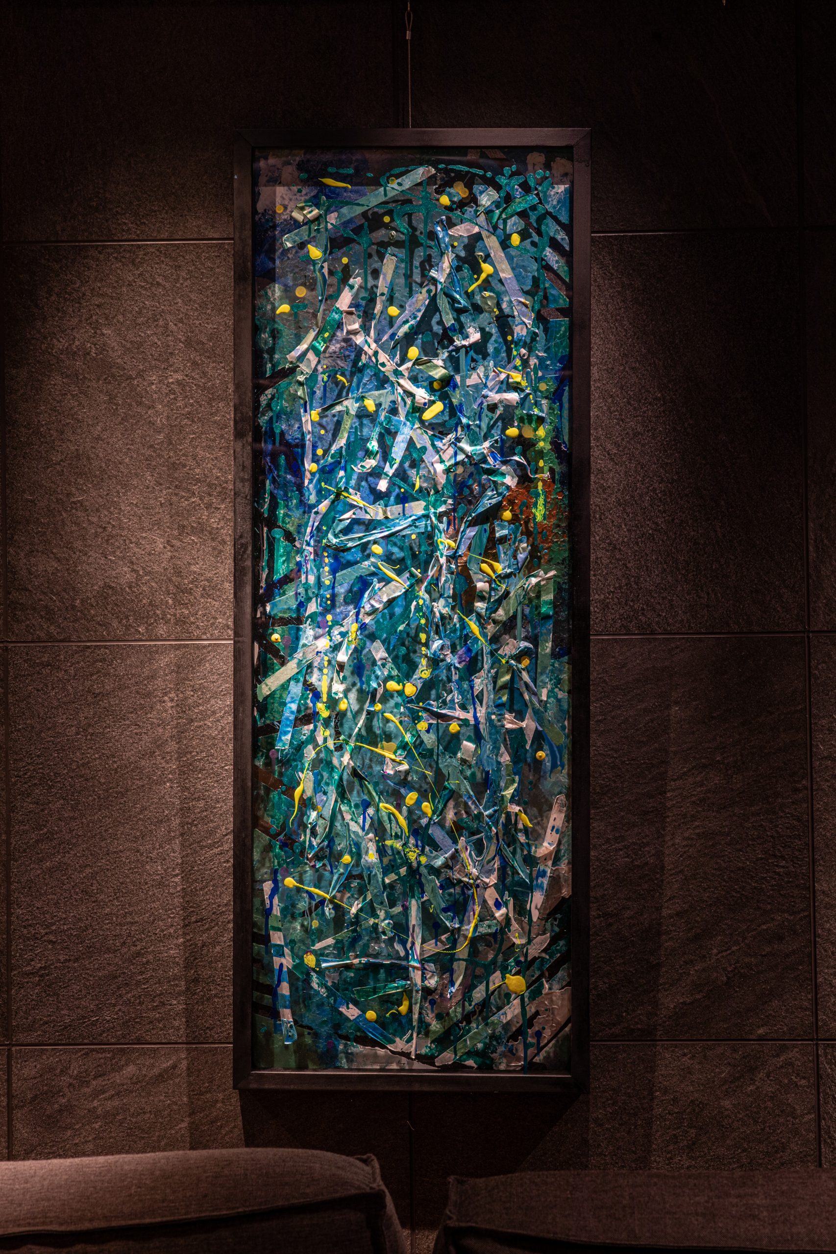 The artworks are created by combination of photographs and paintings on transparent acrylic panels which are integrated reverse side.