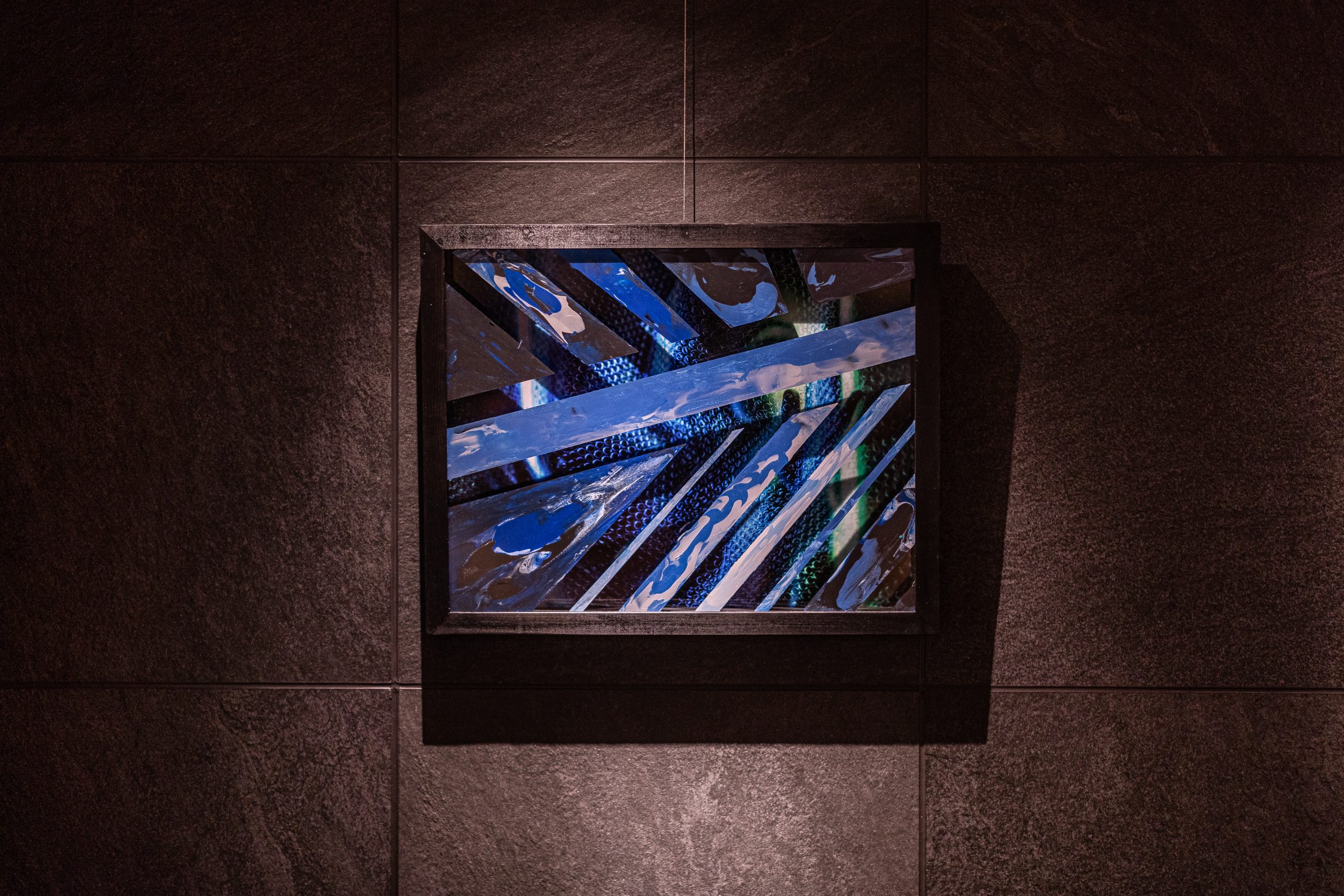 The artworks are created by combination of photographs and paintings on transparent acrylic panels which are integrated reverse side.